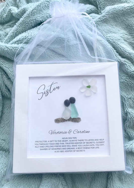 Set of 5 Framed Sea Glass Art Gifts for Sisters – Handmade & Personalized Sister Gift for all of my sisters Custom Gifts for Sisters