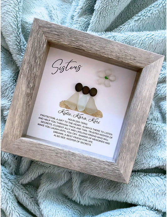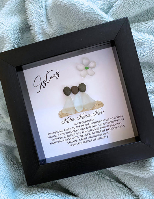 Set of 3 Framed Sea Glass Art Gifts for Sisters – Handmade & Personalized Sister Gift for all of my sisters Custom Gifts for Sisters