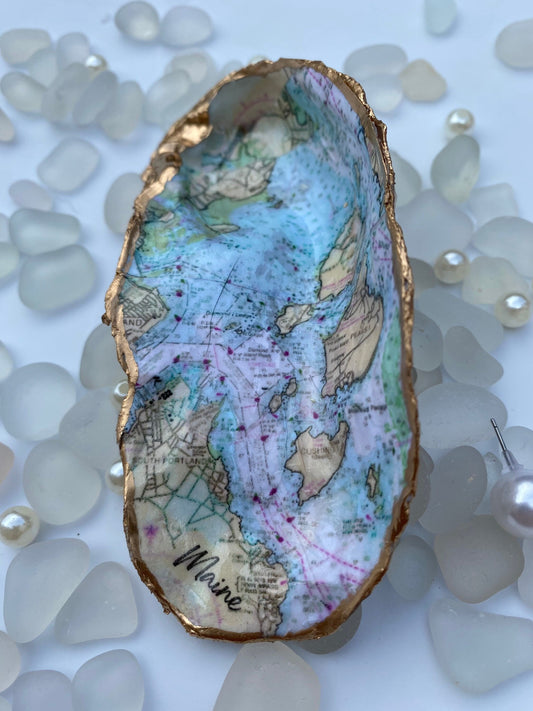 Maine Christmas Ornaments-Custom Casco Bay Oyster Shell/Maine/Maine Art/Maine Gift/Portland Maine/Maine Map/Casco Bay/NOAA Chart/Travel