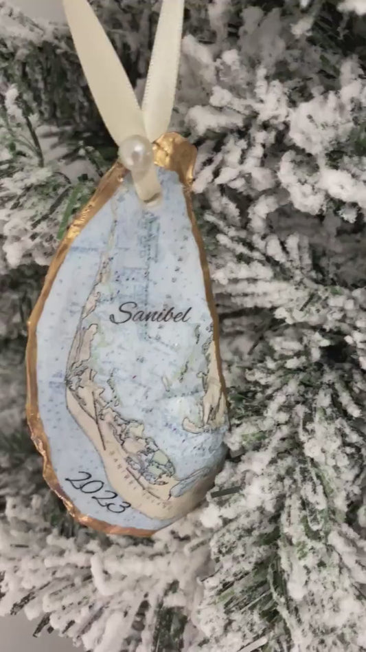 Sanibel Island Oyster Shell Christmas Ornament Personalized/Sanibel Strong/Florida/Sanibel Island/NOAA Chart/Captiva/Art/Sanibel Lighthouse