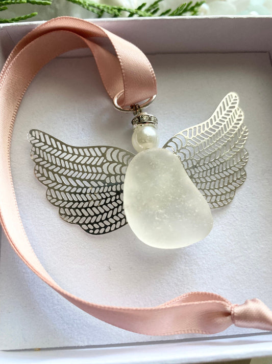 Sea Glass Angel Ornament Memorial Gift Christmas Gift for her Guardian Angel Gift Ornaments Car Charm Angel Wings Sun Catcher Grief Gift