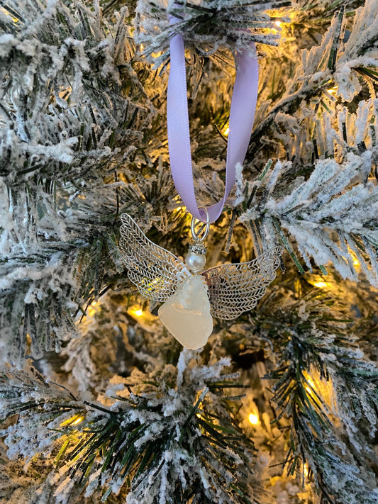 Angel Ornament Sea Glass Ornaments Angel Christmas Ornament Lavender Angel Ornaments Handmade Angel Ornaments Coastal Christmas Ornaments