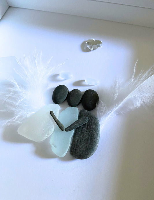 Angel Grief Gift Sea Glass Art Angel Gift Loss of Loved One Loss of Husband Loss of Mom Memorial Gift Angel Wing Feather Handmade Gift (C)