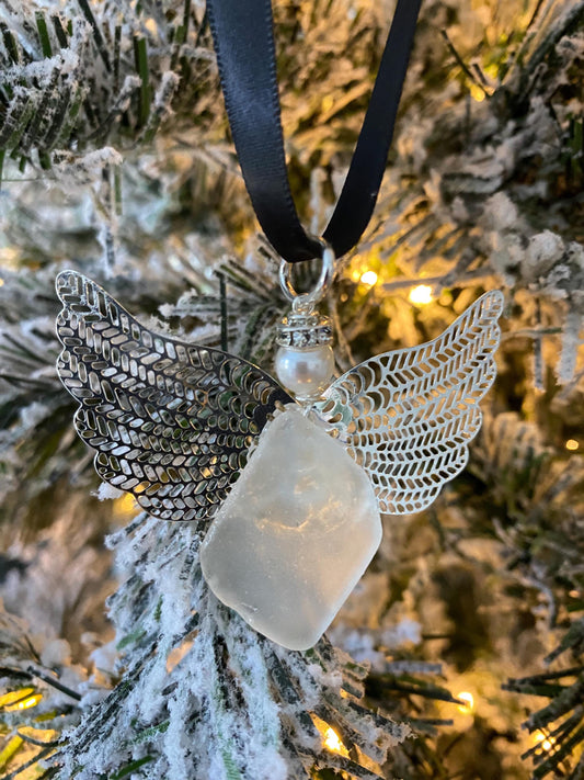 Sea Glass Angel Ornament Memorial Gift Christmas Gift for her Guardian Angel Gift Ornaments Car Charm Angel Wings Sun Catcher Grief Gift
