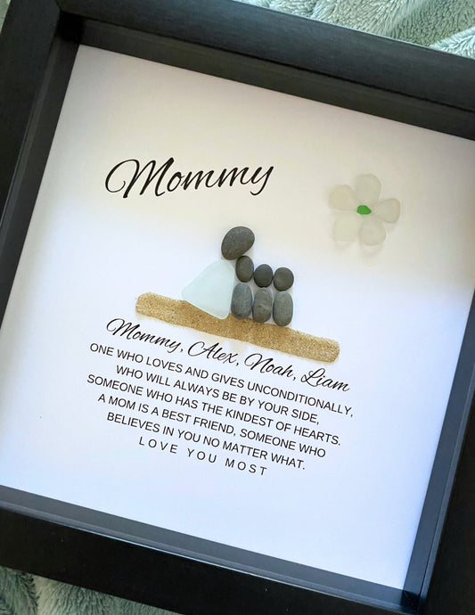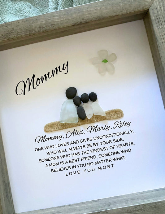 Mom Personalized Birthday Gift for Mom Gifts from Daughter Pebble Art Sea Glass Unique Mother & Daughter Handmade Mom Gift from Kids Mommy