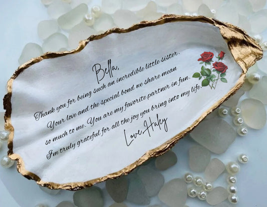 Personalized Little Sister Gift Birth Flower Oyster Shell Ring Dish Gift-Boxed Sister Gift Personalized Sister Keepsake