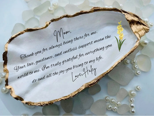 Mom Gift Personalized Special Mom Gift Birth Flower Gift Oyster Shell Ring Dish for Mom Christmas Gift Birthday Gift