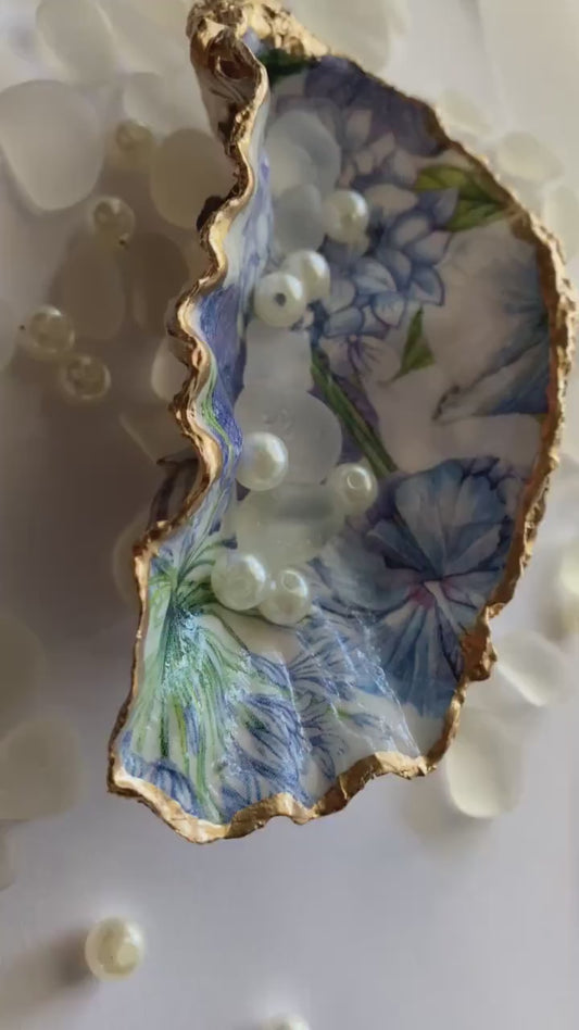 Something Blue, Elegant Flower Oyster Shell Ring Dish, Gift for the Bride, Bridal Party Gifts, Beach Wedding, Hostess Gift, Birthday Gifts