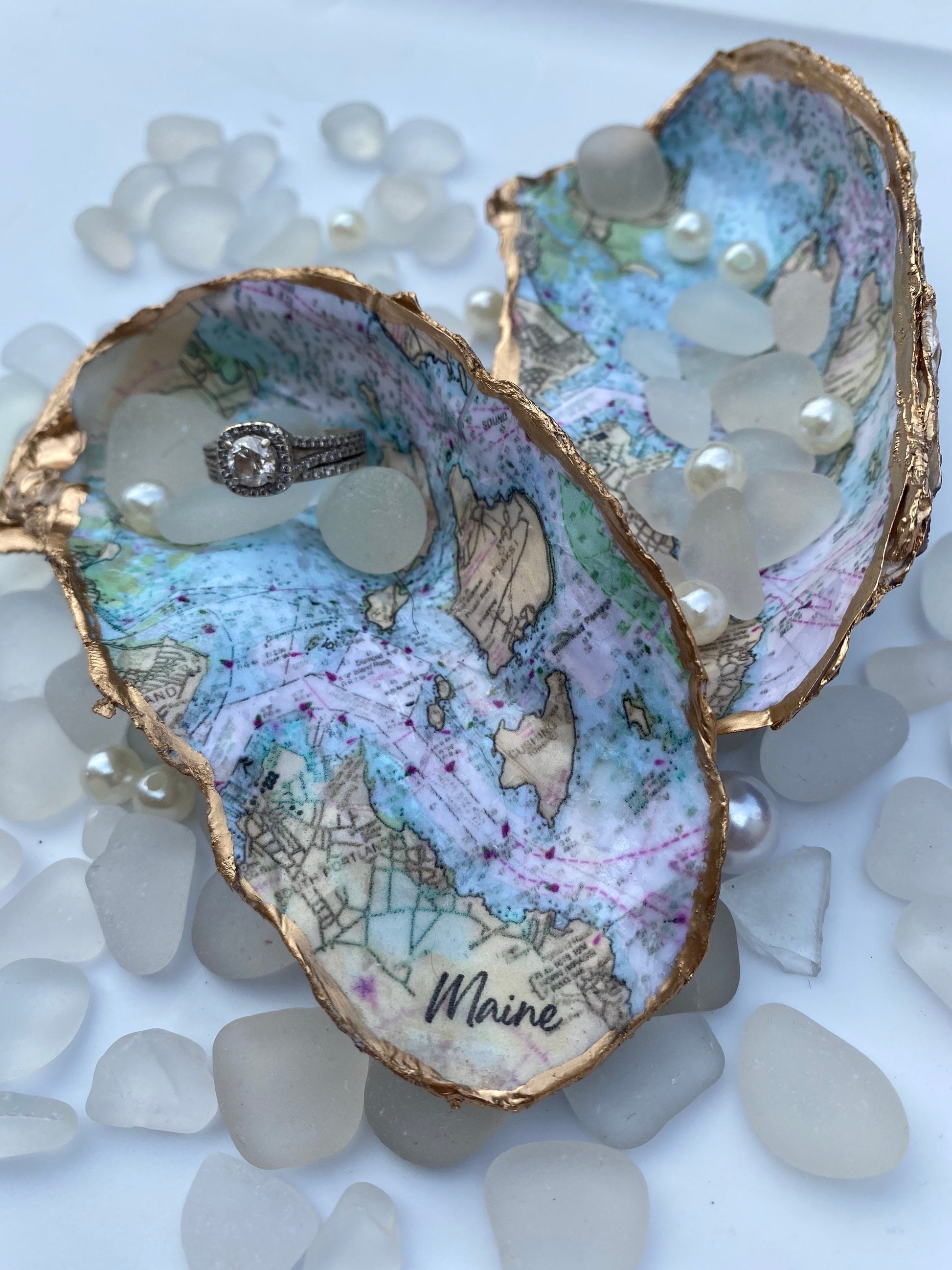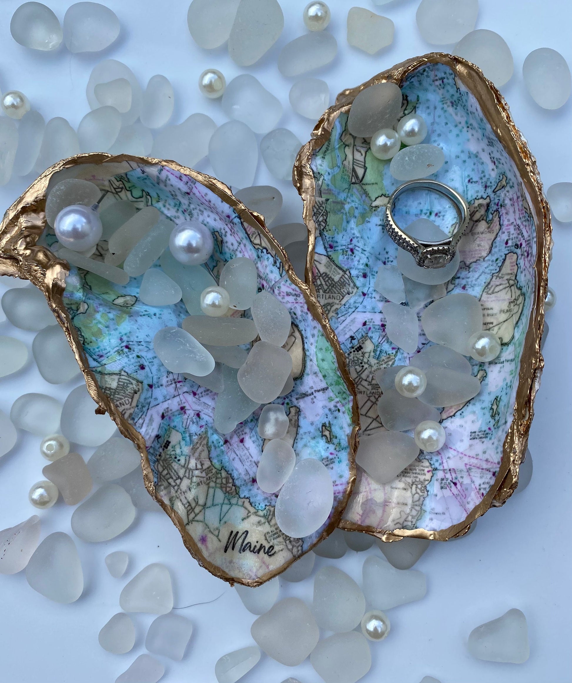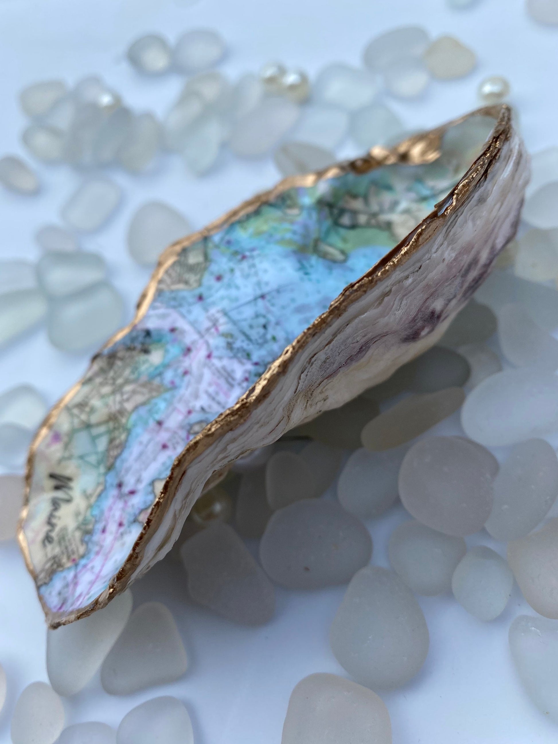 Discover the perfect Custom Maine Map Oyster Dish, a unique blend of Maine art and functionality that makes an unforgettable gift. Ideal for weddings, engagements, anniversaries, or graduations, this personalized map gift features a beautiful NOAA chart of Maine, celebrating the coastal charm of Casco Bay. Whether it’s for the 30th wedding anniversary or simply a thoughtful Maine gift, this oyster shell dish is a standout choice for couples and anyone who loves all things Maine.