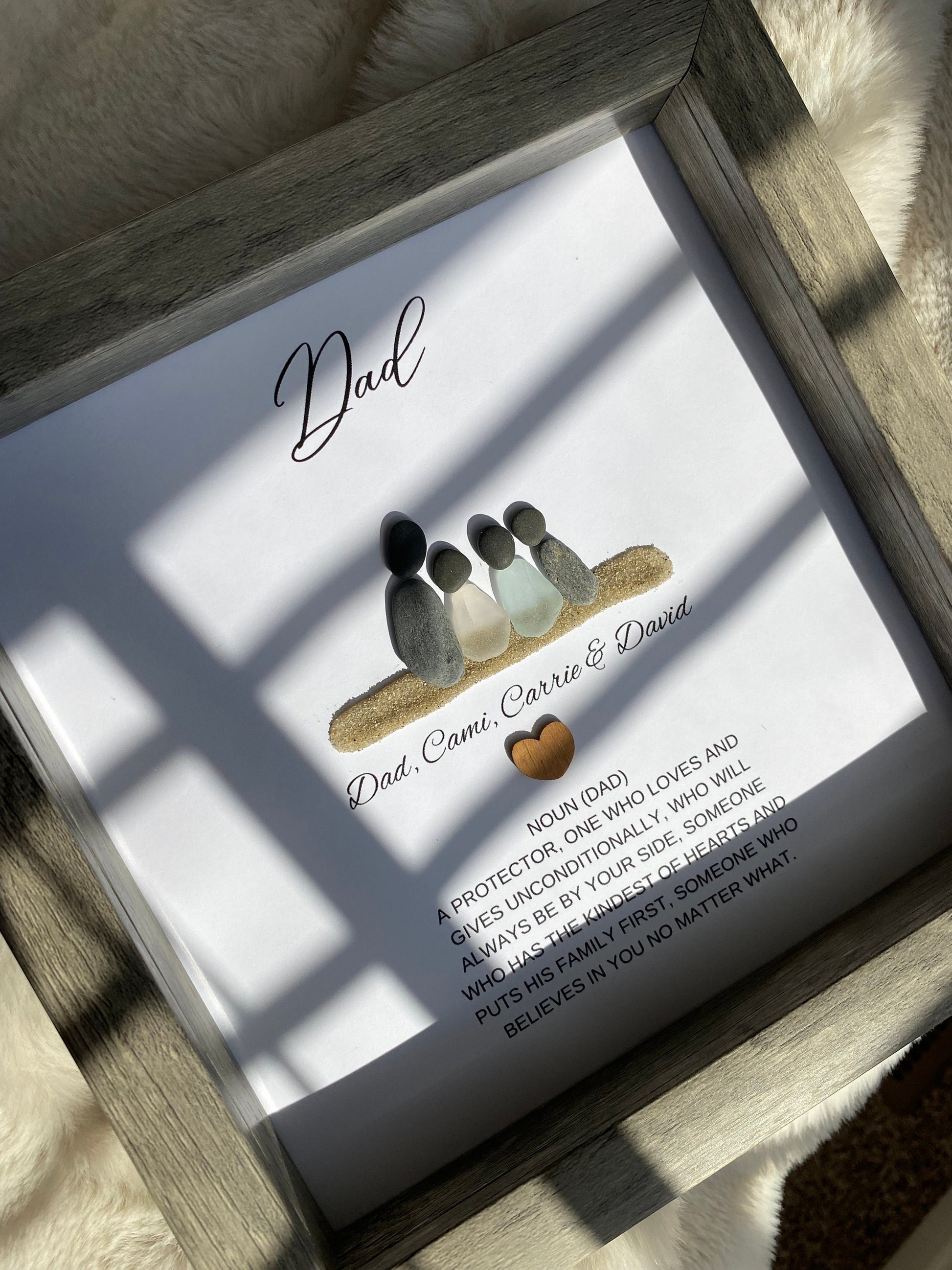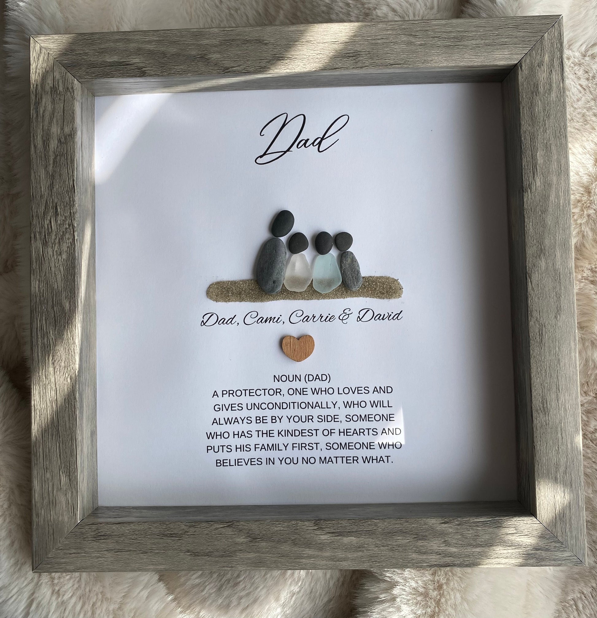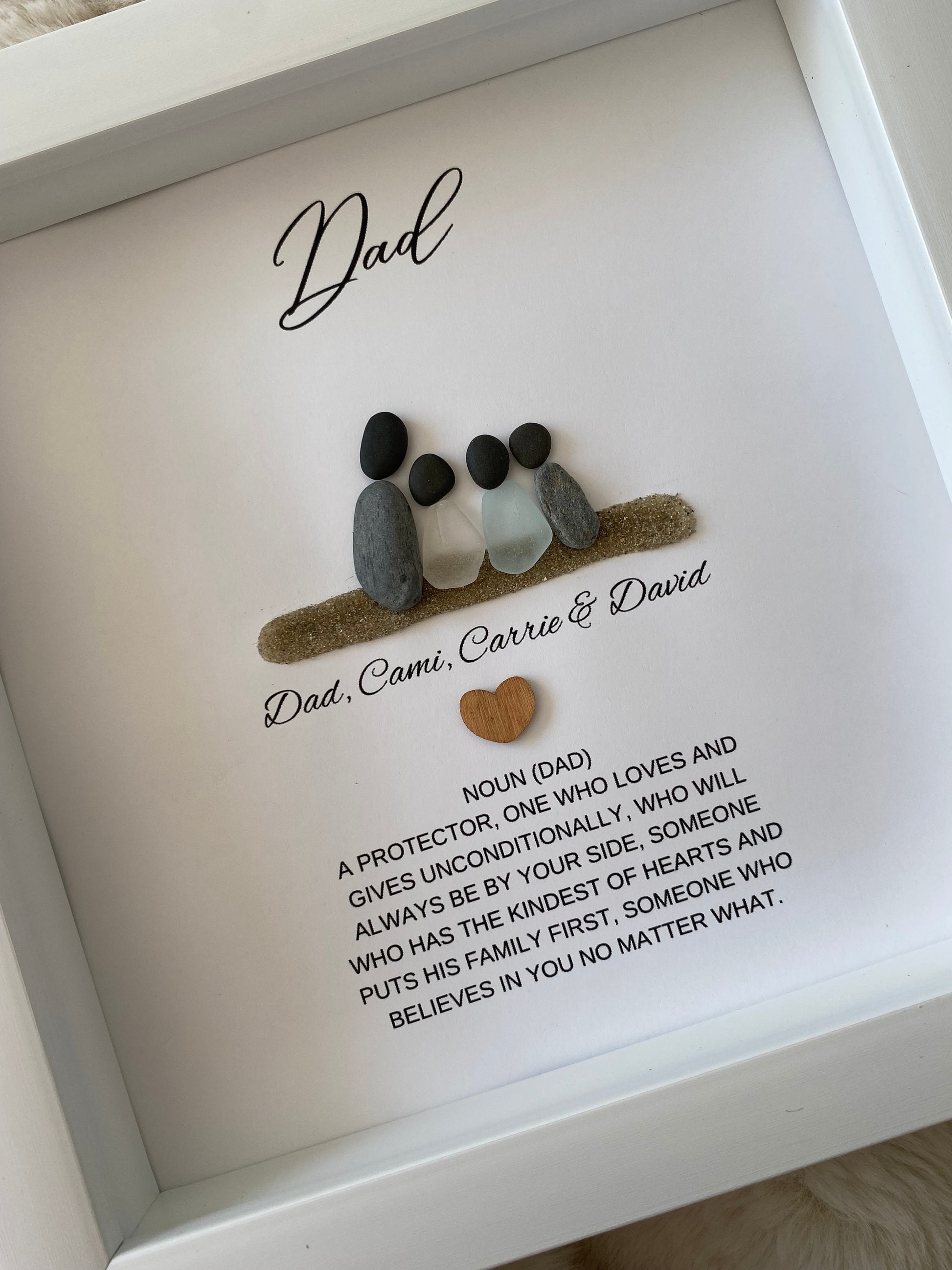 Unique Dad Gifts: Personalized Sea Glass Art for Father’s Day, Birthdays, and Holidays – Celebrate the special bond with your dad through our beautifully handmade framed sea glass and pebble art, crafted in South Carolina. This personalized gift is the perfect choice for a Father of the Bride gift, a thoughtful birthday present, or a memorable Christmas gift from kids or daughters.
