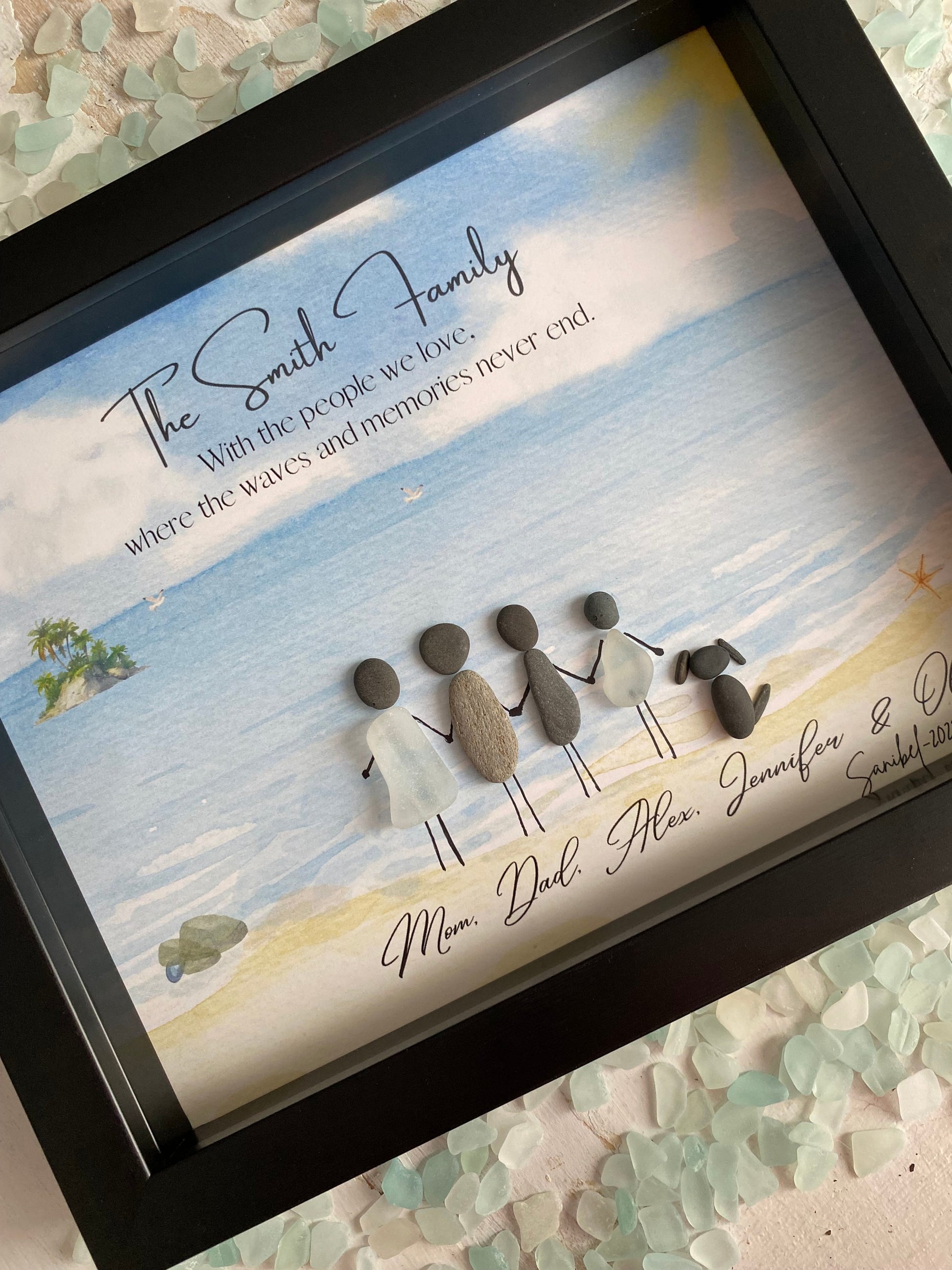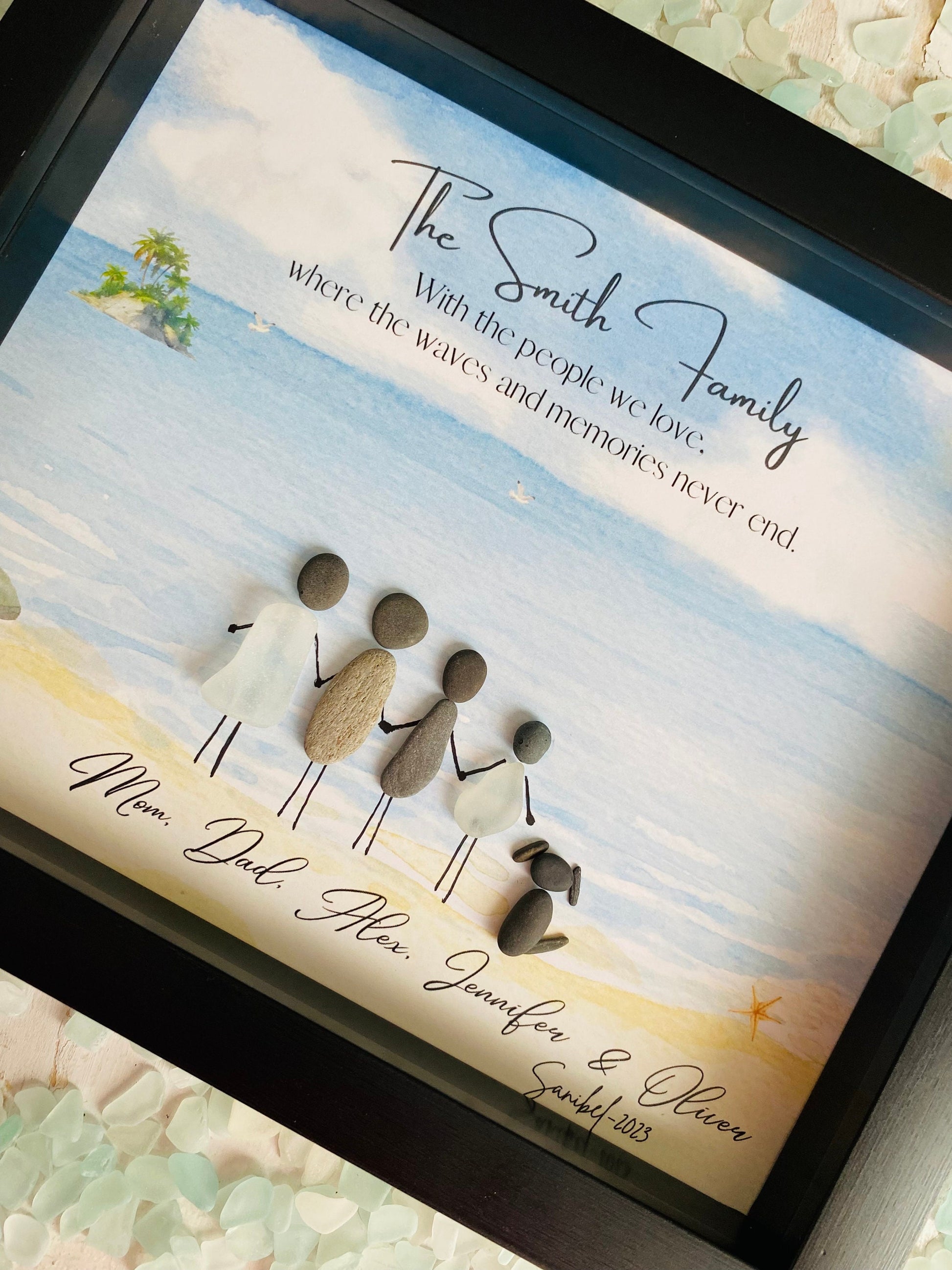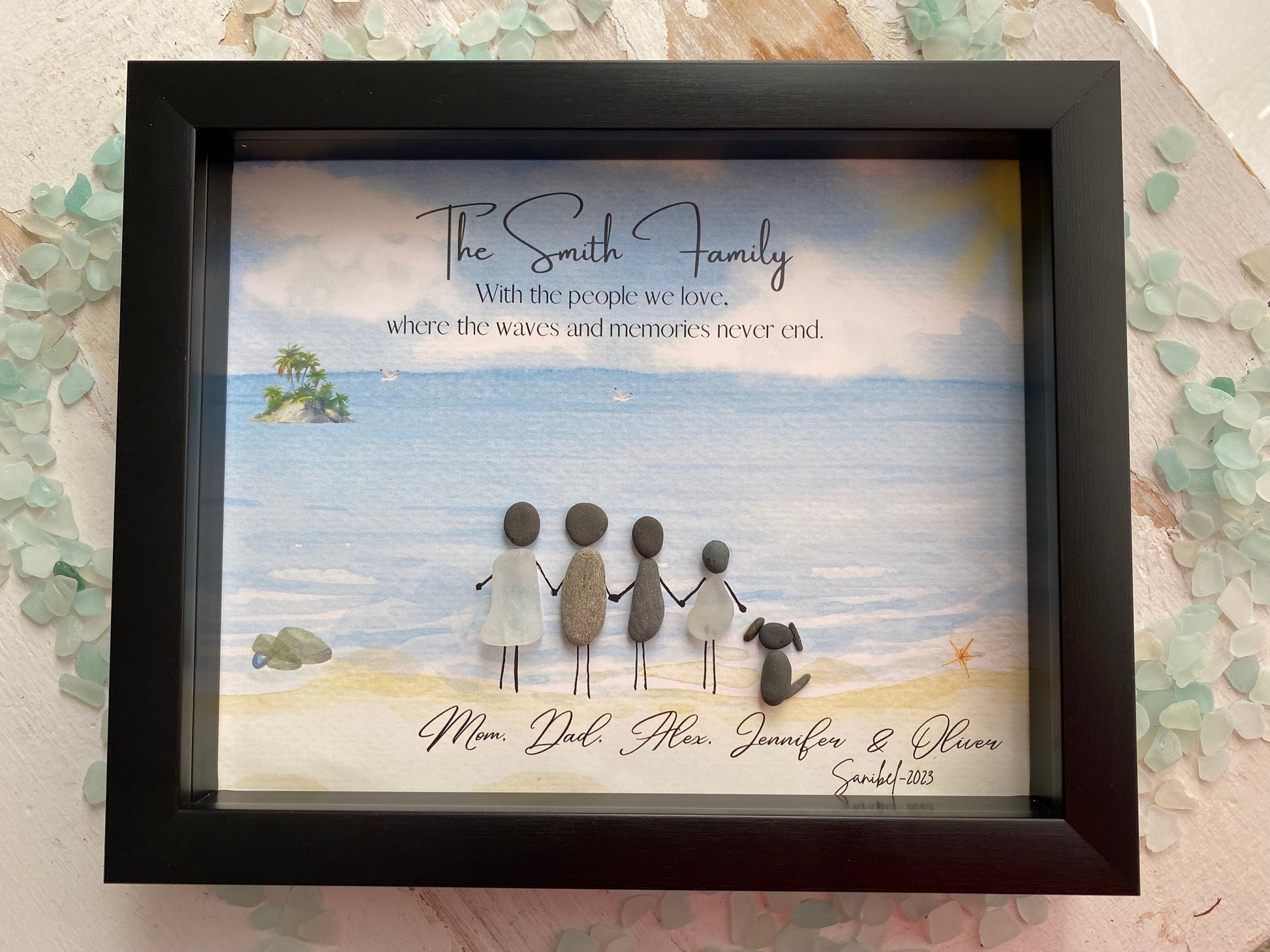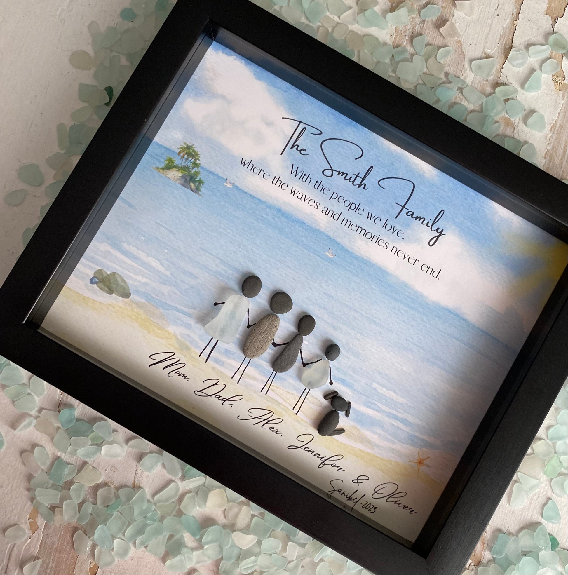 Discover the perfect personalized dad gift with this beautifully handmade framed sea glass and pebble art, crafted with love. This unique keepsake is an ideal choice for birthdays, Christmas, Father’s Day, or as a special gift from kids.