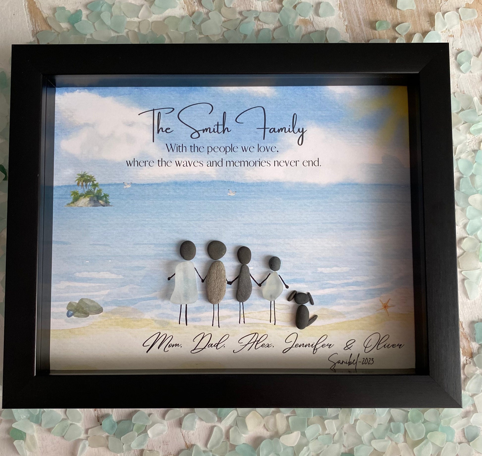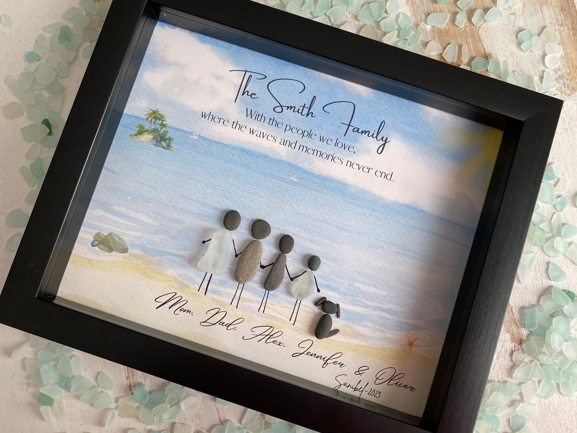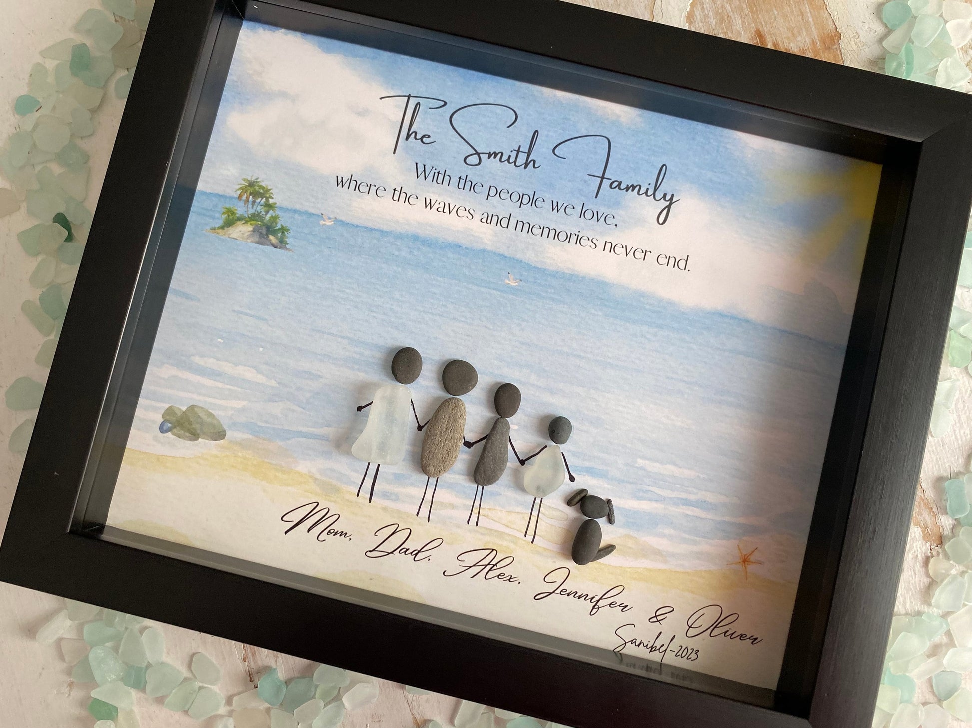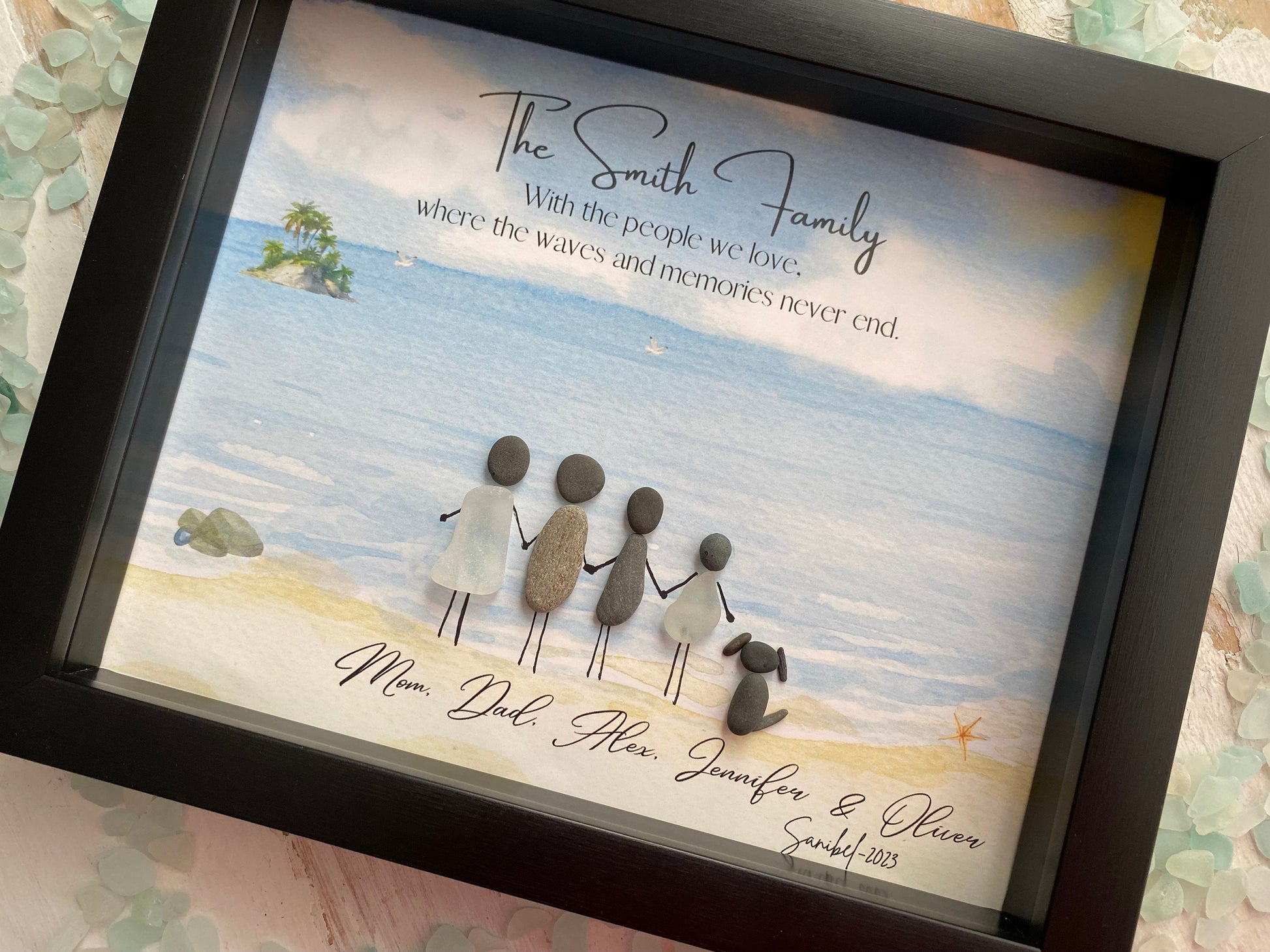 Discover the perfect personalized dad gift with this beautifully handmade framed sea glass and pebble art, crafted with love. This unique keepsake is an ideal choice for birthdays, Christmas, Father’s Day, or as a special gift from kids.
