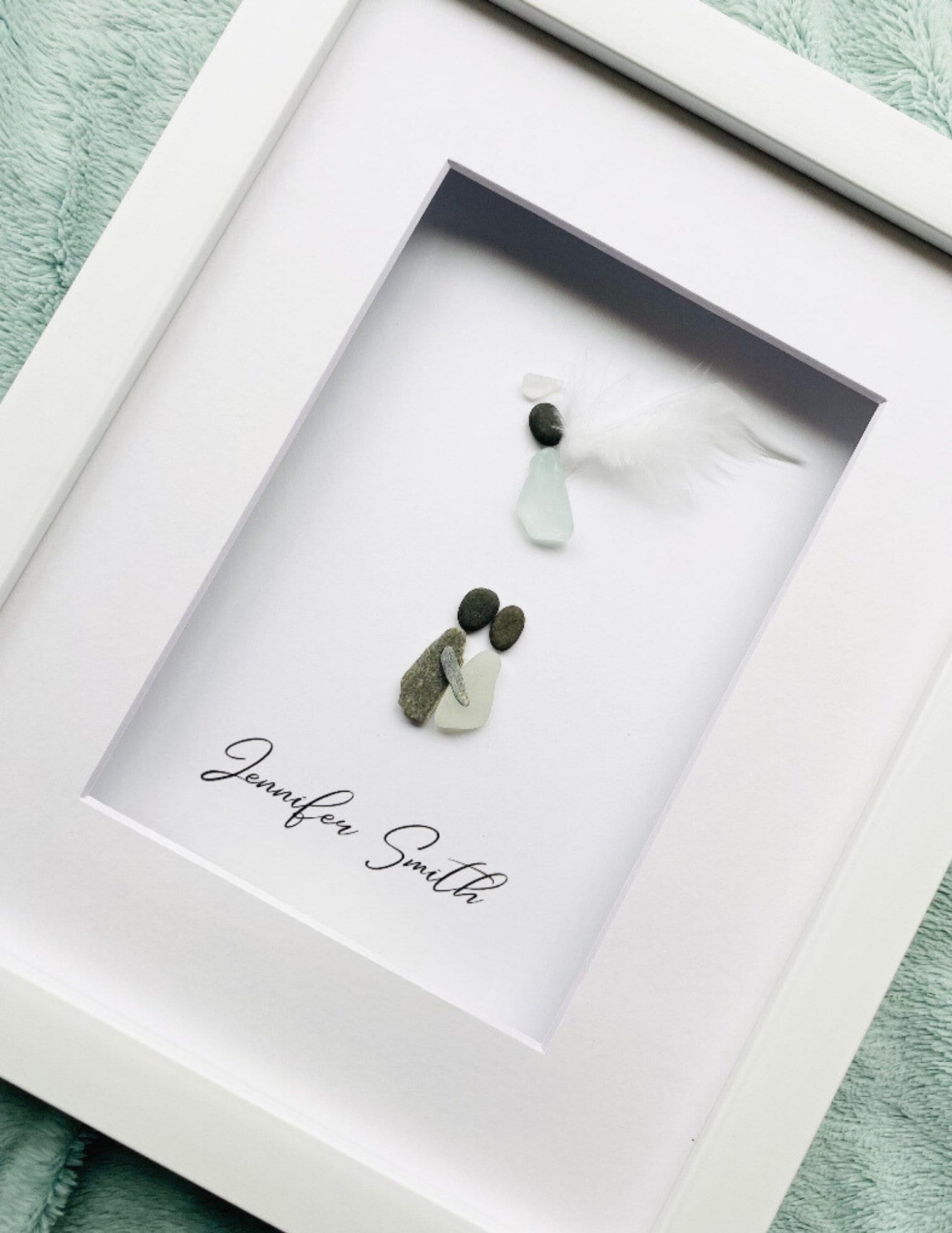 This stunning sea glass art memorial piece is a heartfelt sympathy keepsake gift crafted from sea glass shaped by the ocean. It's a perfect one-of-a-kind sympathy gift for a friend or loved one experiencing loss, especially for those grieving the loss of a child.