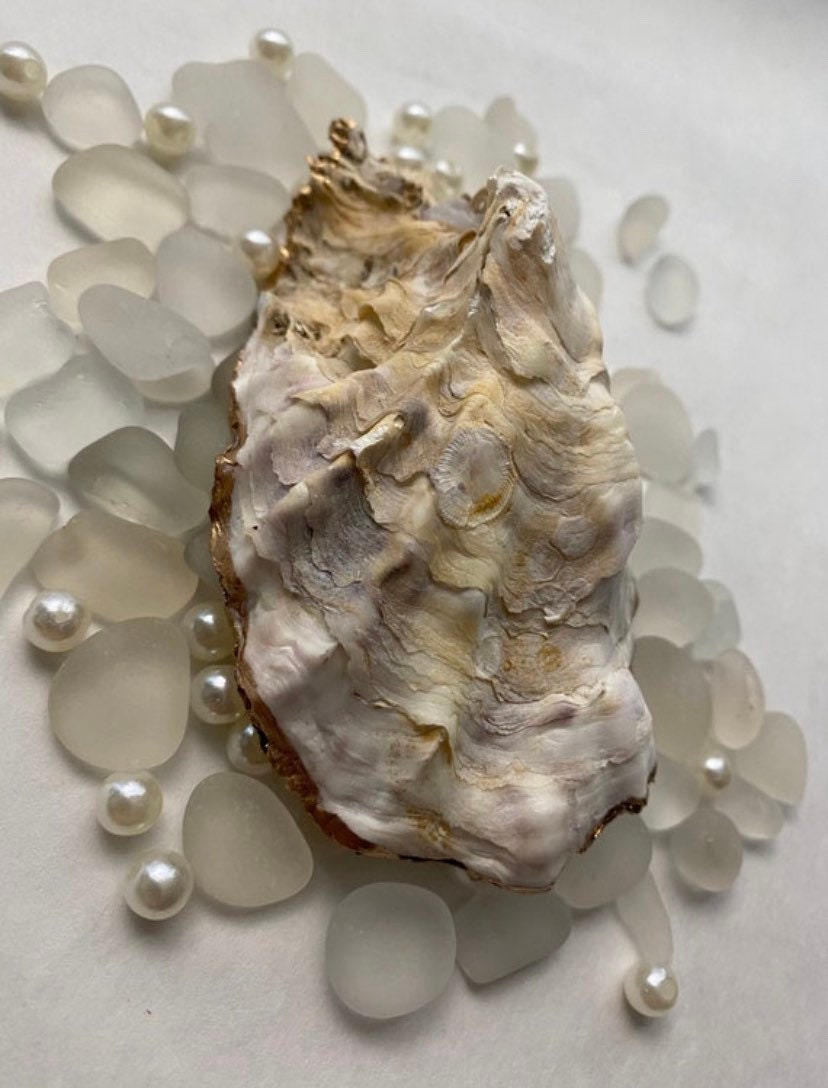 Each oyster shell is handpicked from the shores of Oregon, meticulously washed, and sun-dried. After applying the quote design, the shell is sealed with multiple layers of clear topcoat, enhancing the natural beauty of the inside of the oyster shell.