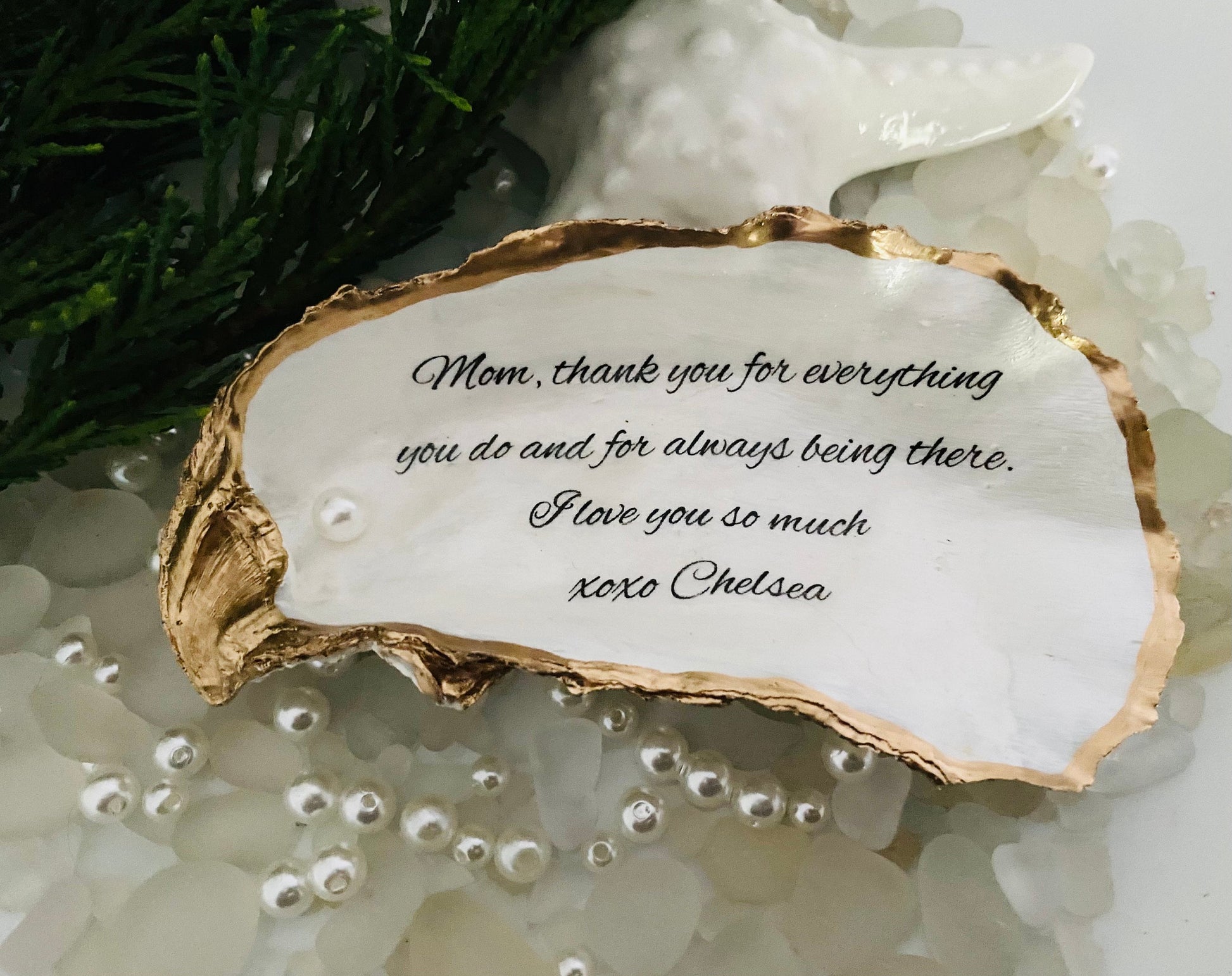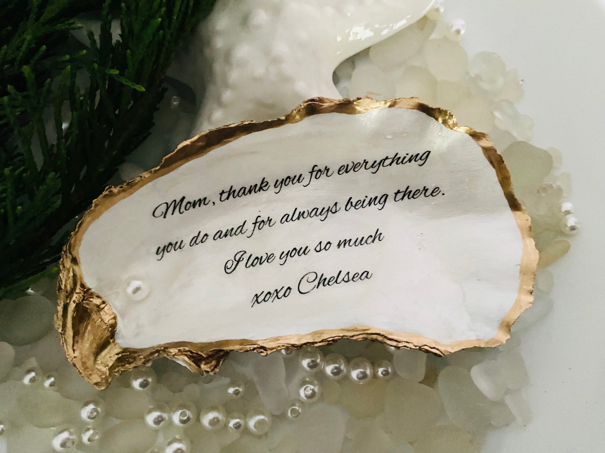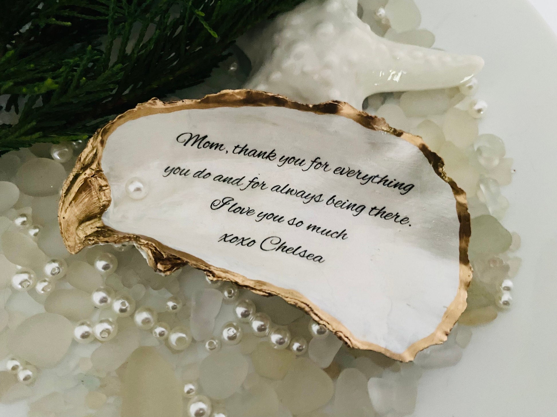 Mom Gift | Personalized Mother's Day Gift from Daughter | Unique Handmade Oyster Shell Jewelry Dish | Birthday Gift for Mom | Gift Mom Keepsake