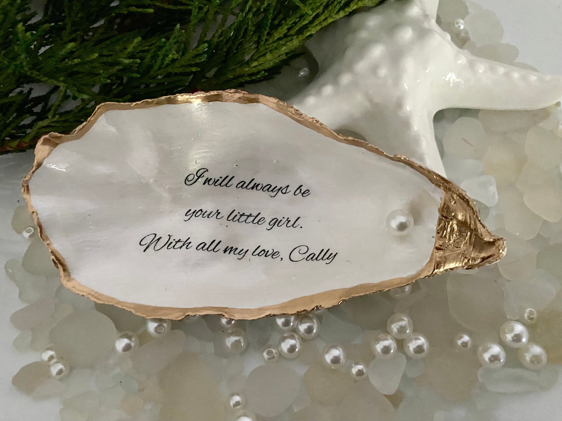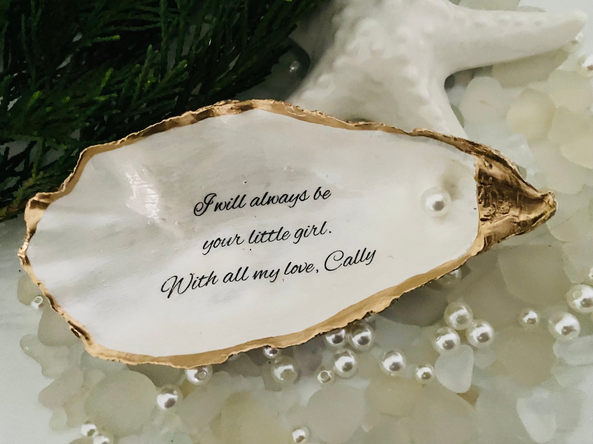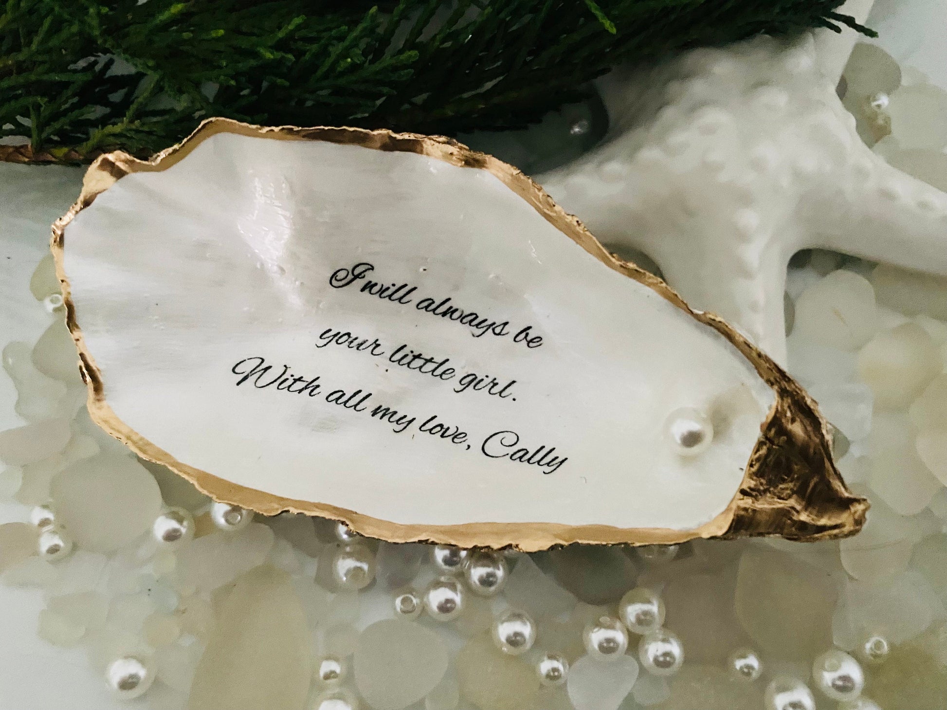 This unique handmade large, personalized Mother's Day, Birthday, Christmas or Just Because Oyster Shell Art Jewelry/Trinket Dish comes with a single crystal pearl bead and is a thoughtful and truly functional keepsake that she will always cherish.
