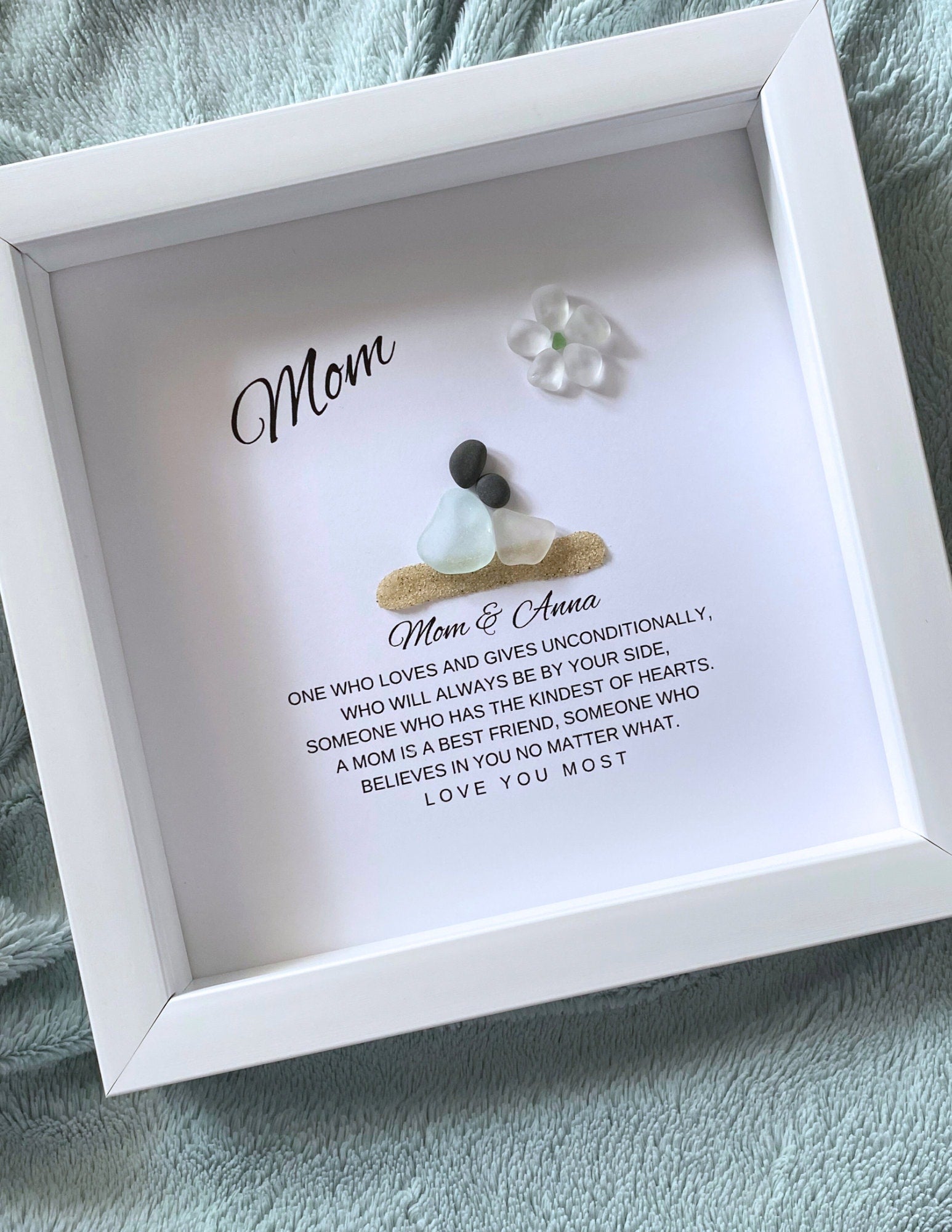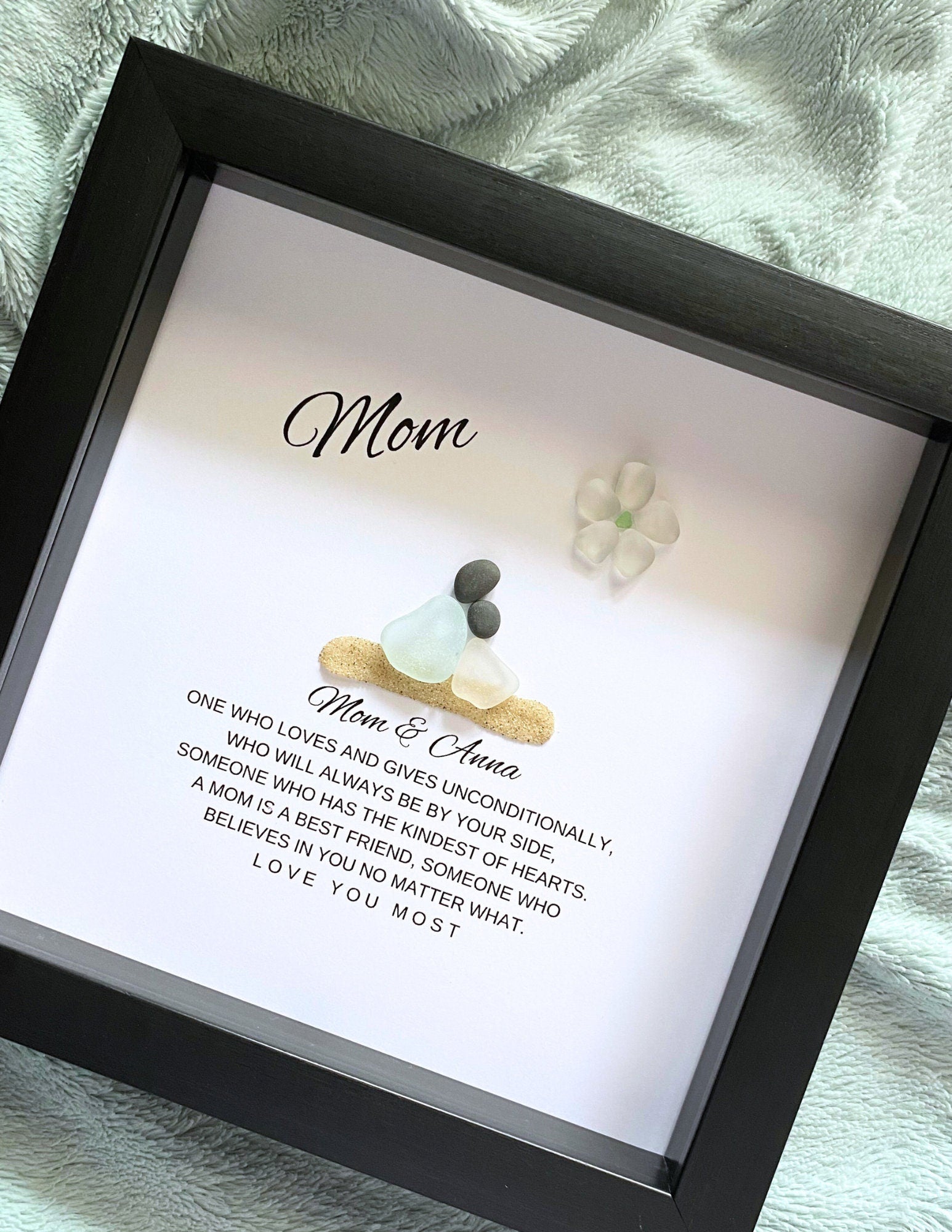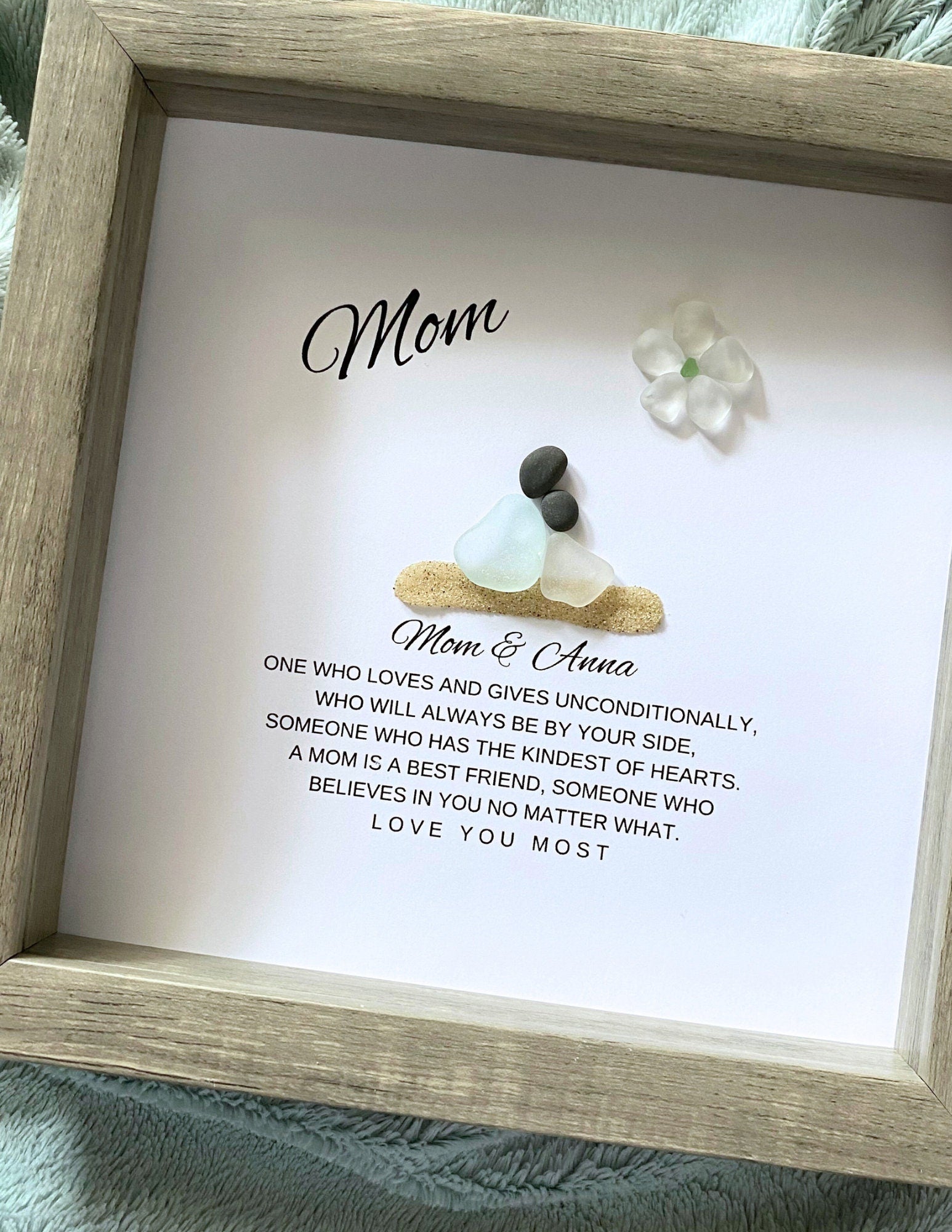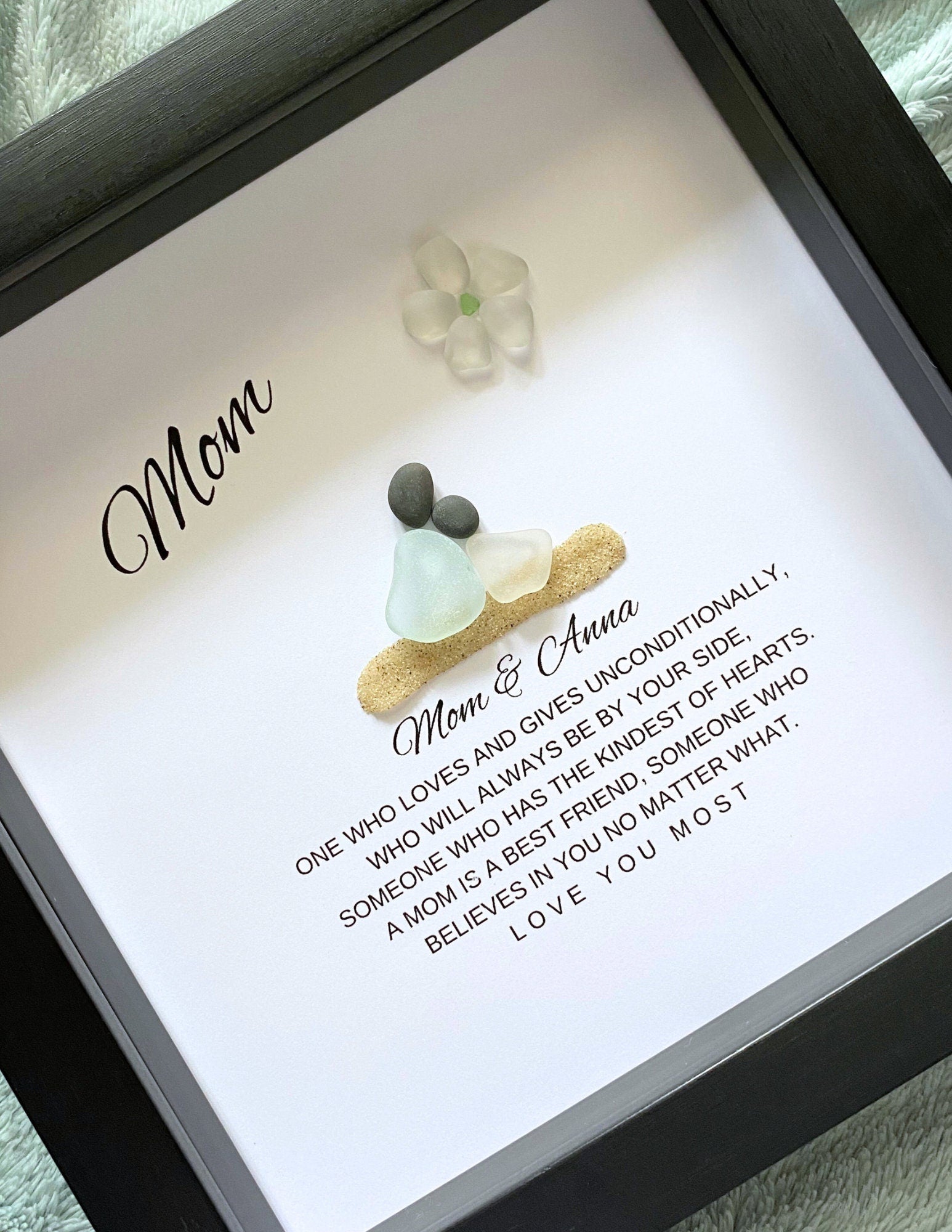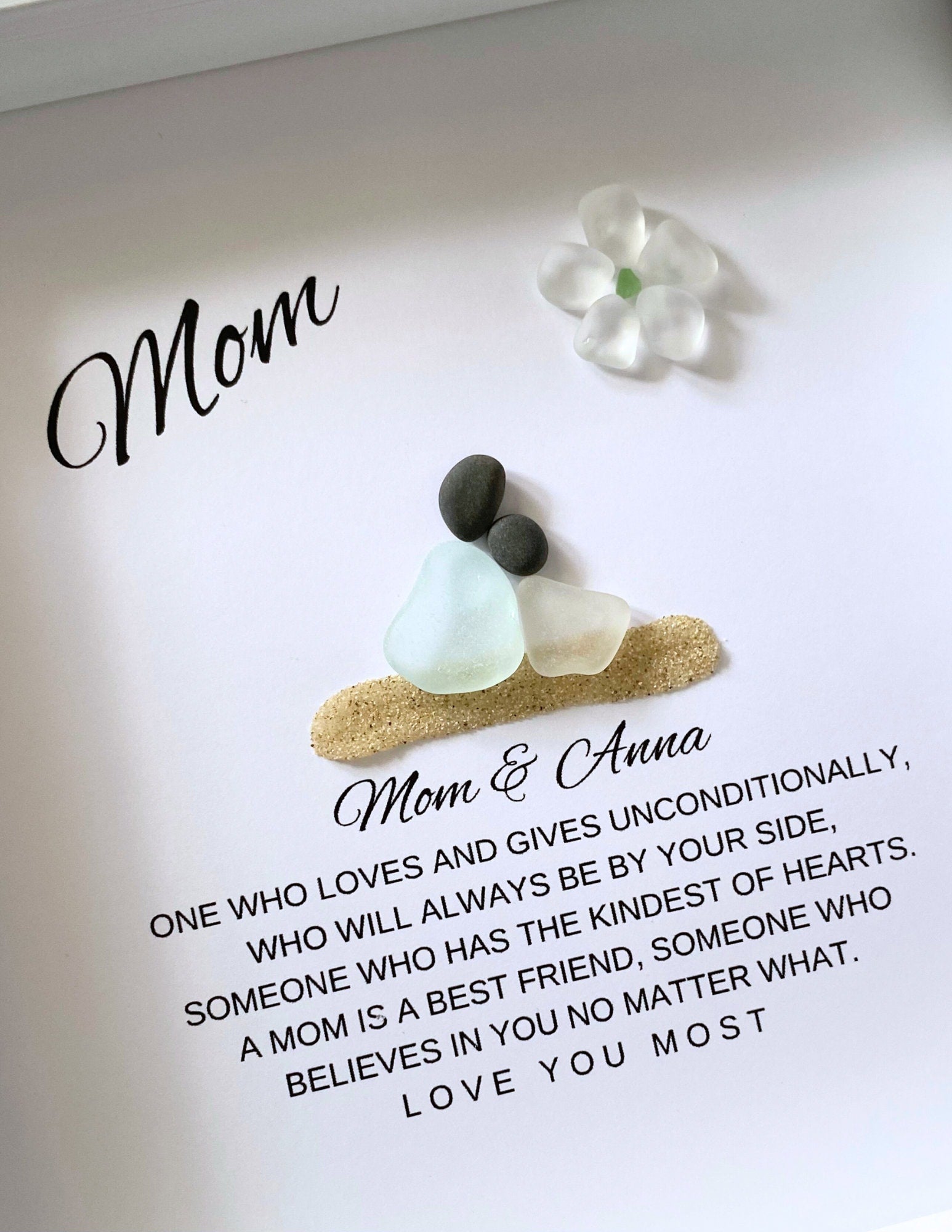 Mom Personalized Birthday Gift for Mom Gifts from Daughter Pebble Art Sea Glass Unique Mother & Daughter Handmade Mom Gift from Kids Mommy