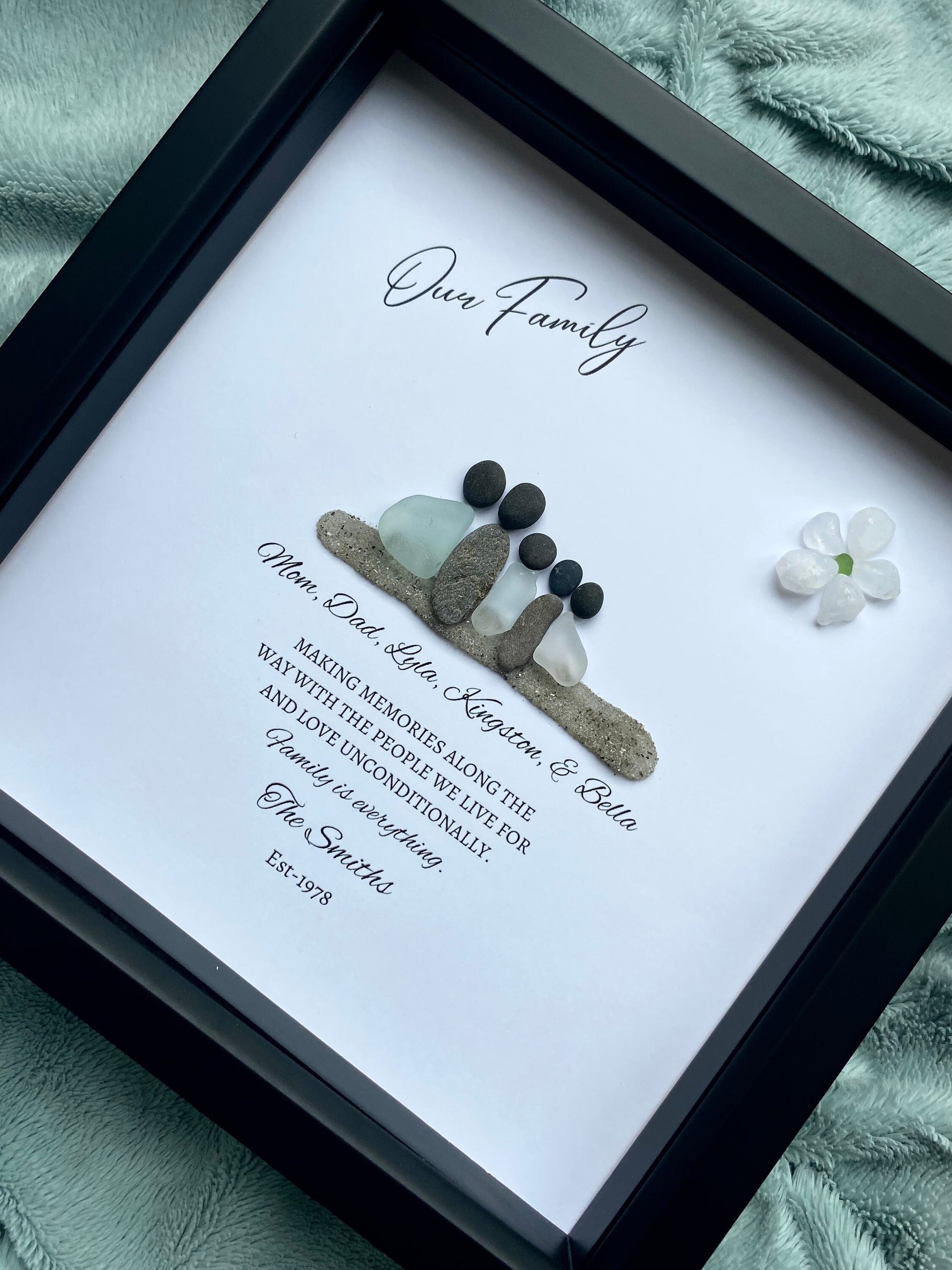 Personalized Family Pebble Beach Art | Unique Keepsake for Dad | Best Father's Day Gift | Handmade Sea Glass Decor | Custom Family Art | Perfect Birthday Gift for Dad | Coastal Home Decor | Family Art Keepsake | Thoughtful Gifts for Him | Christmas Gifts for Dad
