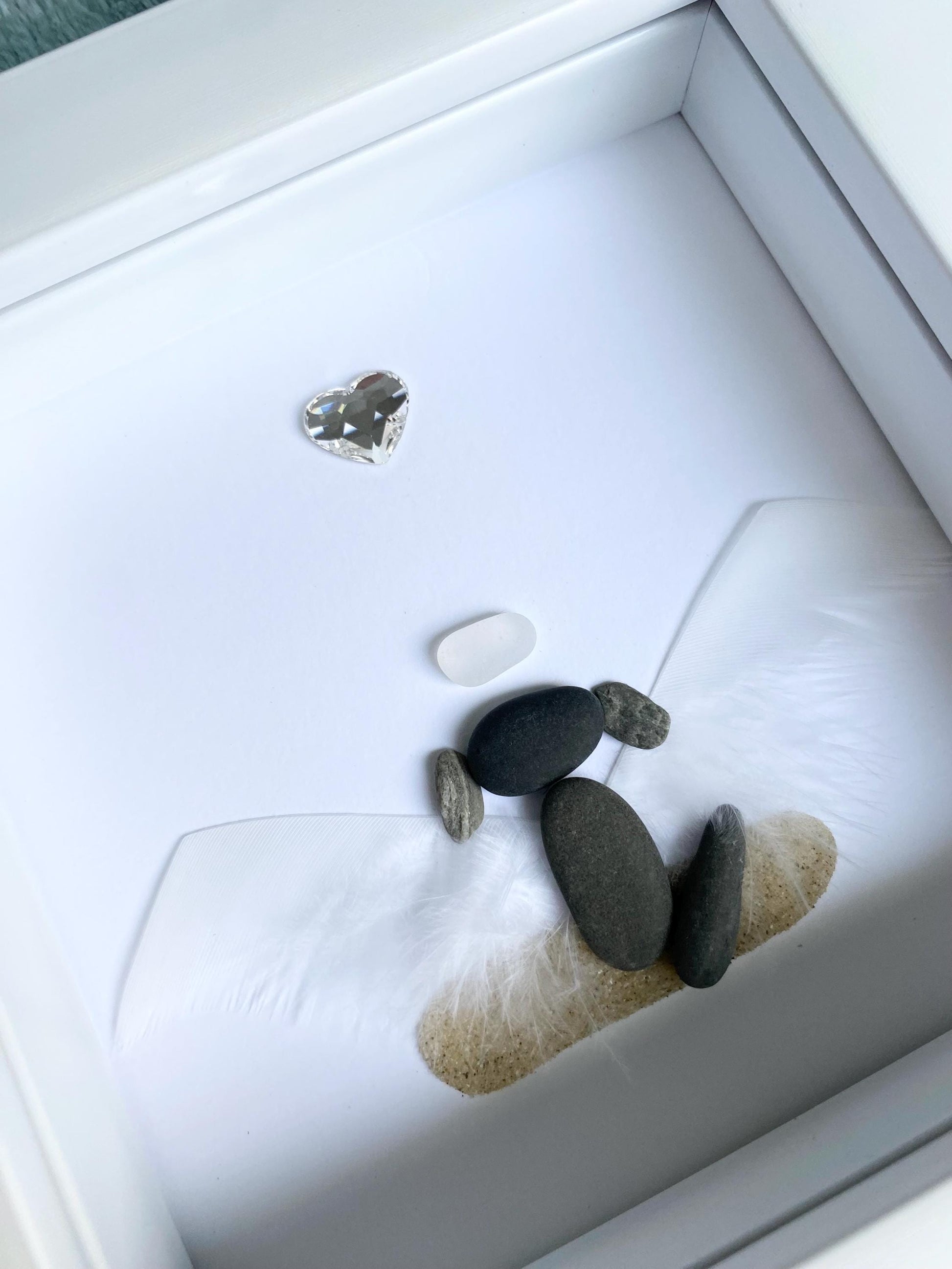 - Customization Options: Personalize your memorial art with your pet's name, birth date/year, and passing date/year. Each piece features a halo of white sea glass and a stone body, creating a touching and unique tribute.