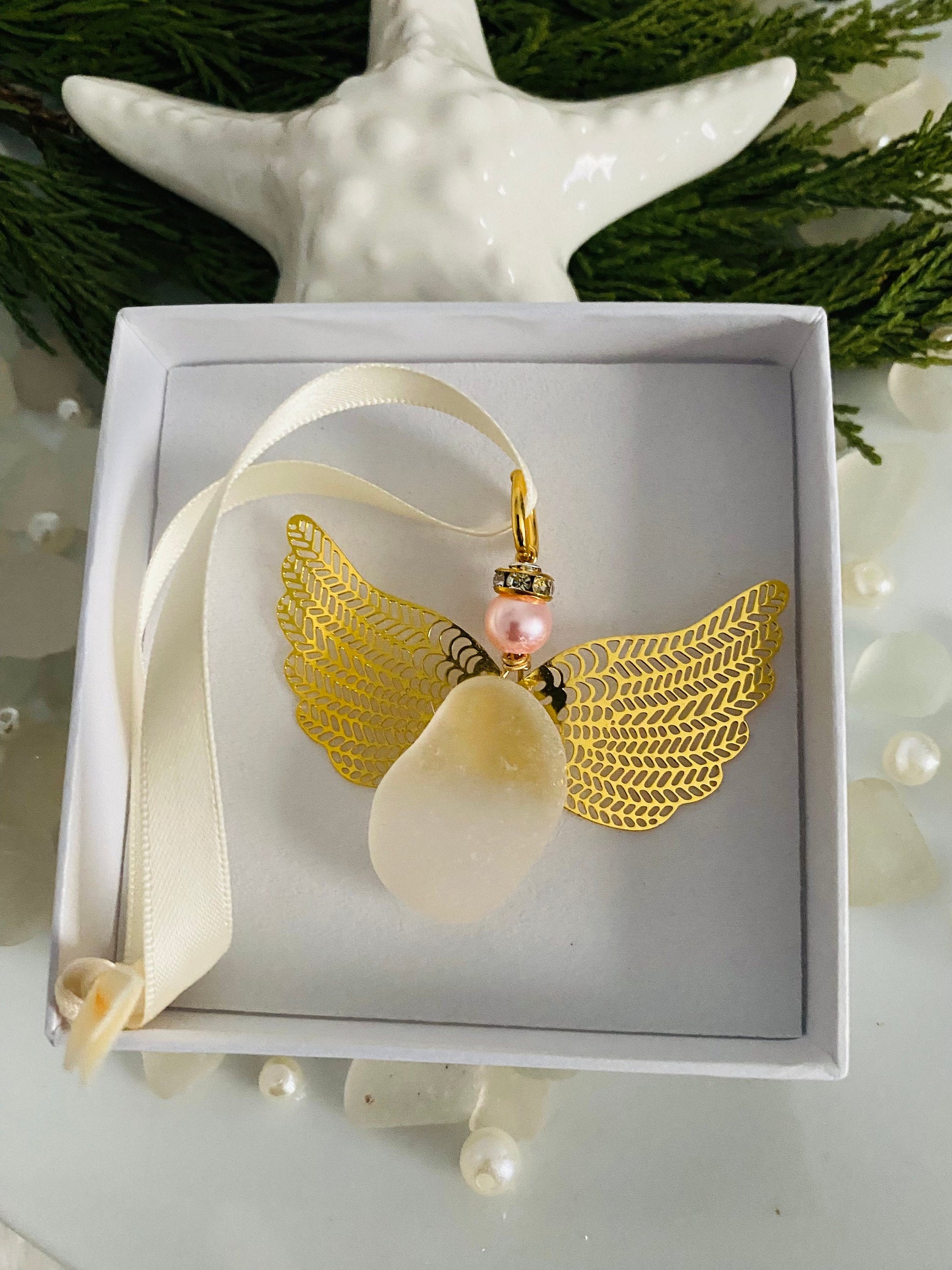 Sea Glass Angel Ornament Christmas Ornaments Coastal Handmade Ornament Angel Ornaments Memorial Ornament Remembrance Ornaments Memorial