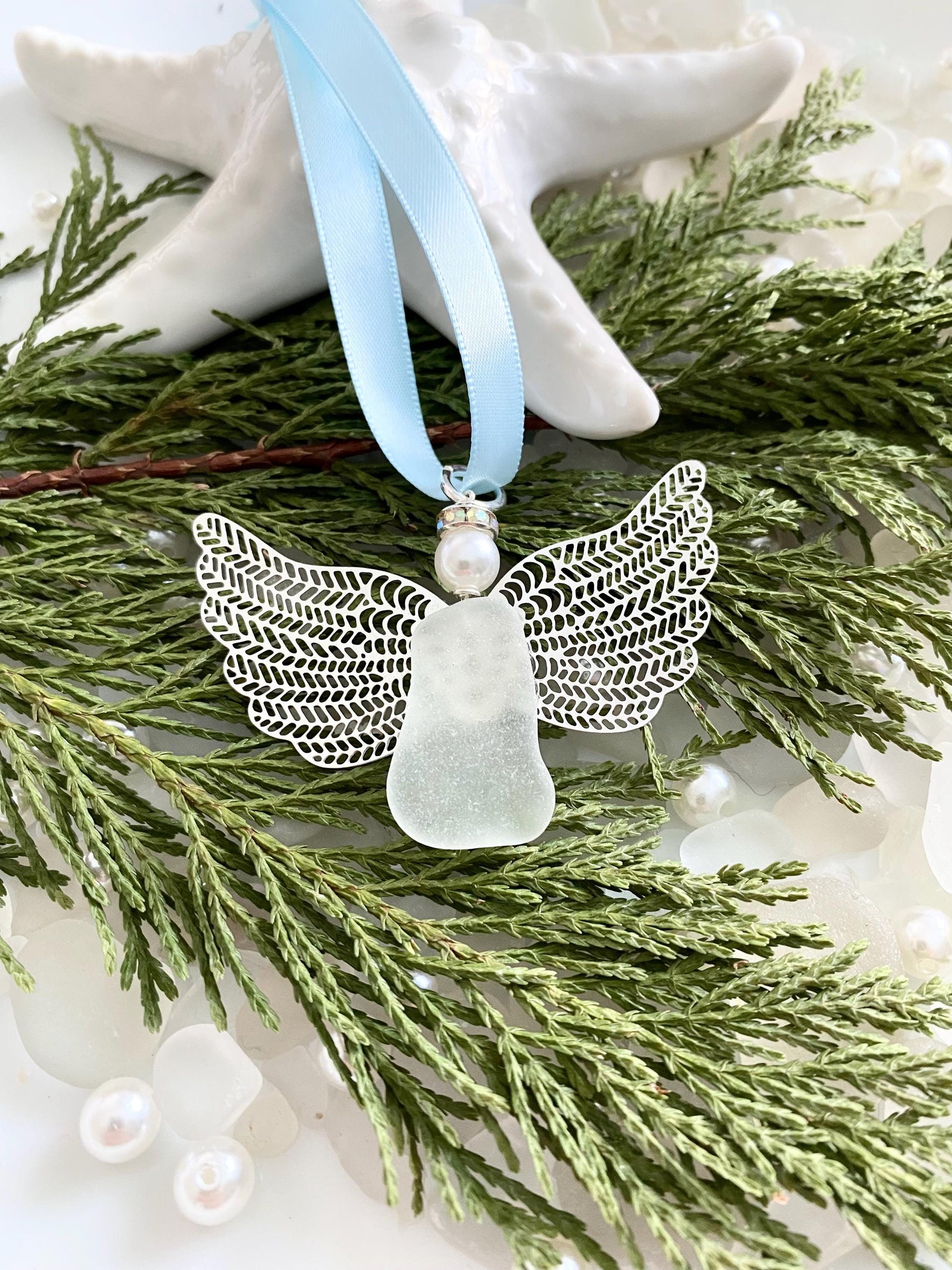 Sea Glass Guardian Angel Ornament – Unique Handmade Angel Ornament