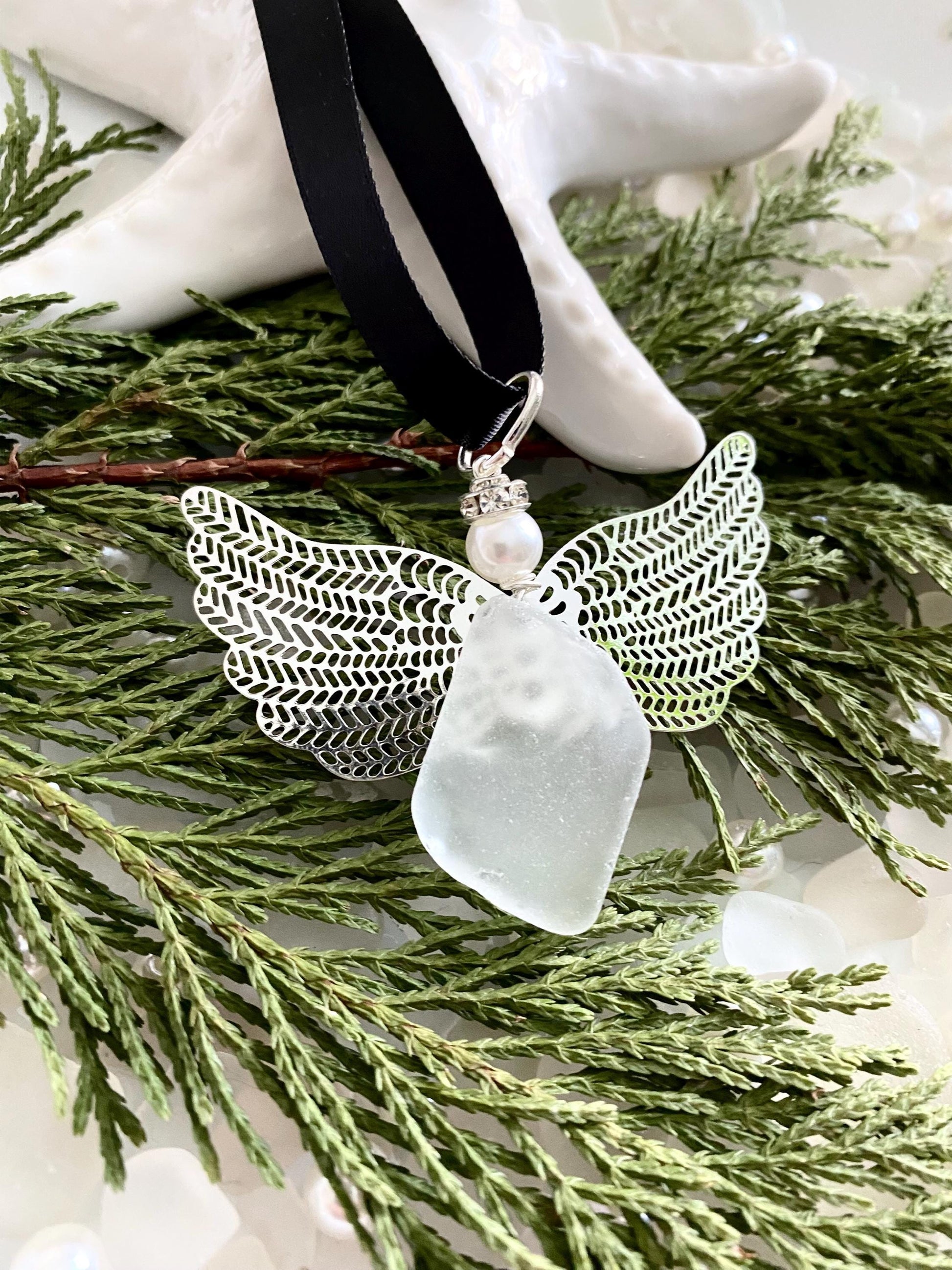 Sea Glass Angel Ornament Memorial Gift Christmas Gift for her Guardian Angel Gift Ornaments Car Charm Angel Wings Sun Catcher Grief Gift