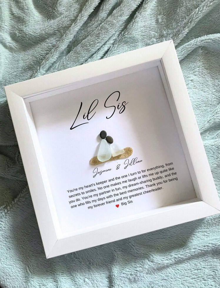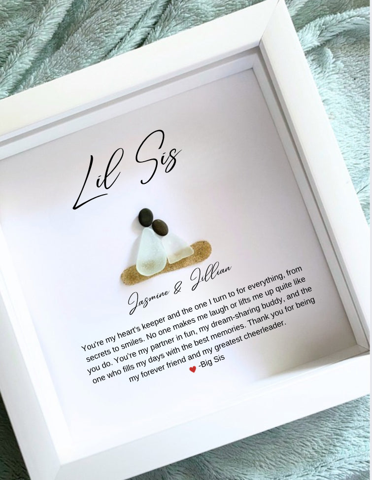Personalized Sister Gift Lil Sis Gift Handmade Sister Art Sea Glass Sister Git Custom Pebble Art Unique Sister Gift Birthday Gift for Sister